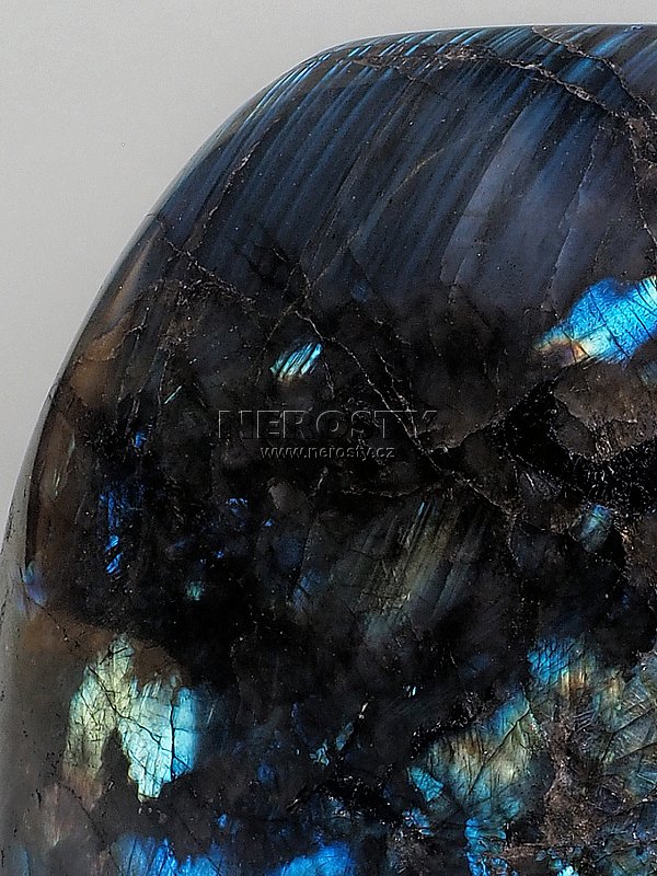 Sorry, currently is available only Czech description. Volně tvarovaný leštěný kus labradoritu s intenzivní s ocelově modrou i zlatožlutou barvoměnou.